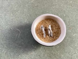 Mijn hobby is zilversmeden en dat doe ik al tien jaar! Ik maak sieraden van oude sieraden die ik krijg. Ik giet ’t zilver op lavendeltakjes, kikkererwten en in water. De opbrengst van de sieraden gaat naar KIKA.
