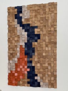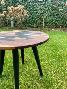 Verder ben ik mezelf aan het ontwikkelen. Ik ben meubels aan het maken die stuk voor stuk uniek zijn: een salontafellamp van twee houten ringen, een bijzettafel met notenhout en epoxy, twee kastjes met een kersenhouten bovenblad, of een houten schilderij gemaakt van bijna 600 losse blokjes.
