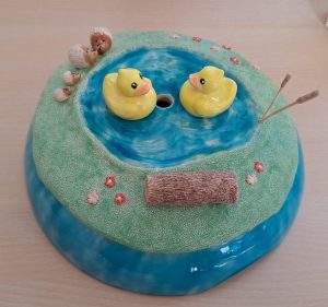 Ik ben volledig autodidact. Sinds een jaar houd ik mij bezig met keramiek. Ik heb hiervoor wel klei beelden gemaakt maar keramiek geeft er een extra dimensie aan. Het werken met klei geeft mij een weg om mijn fantasie tot uiting te brengen. Mijn inspiratie haal ik uit fantasie werelden, steampunk ideeën die zich vormen in mijn hoofd en soms oude beelden van films. Verder zijn het de kronkels in mijn hoofd die de creativiteit van mijn hoofd naar mijn handen brengt.